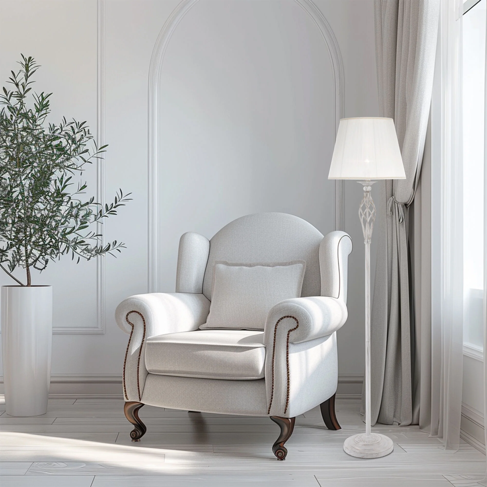 Напольный светильник с тканевым абажуром 01003/1 белый с золотом