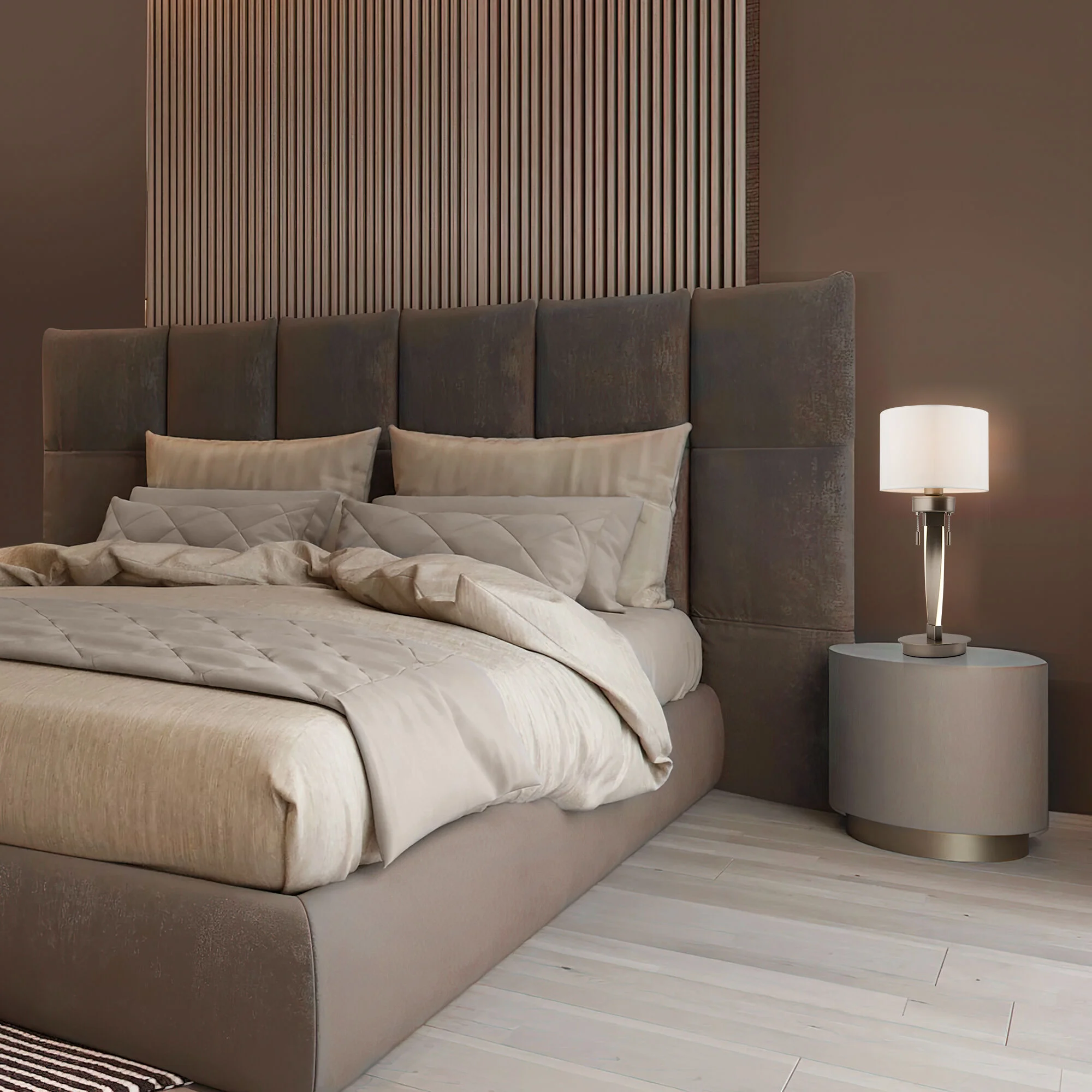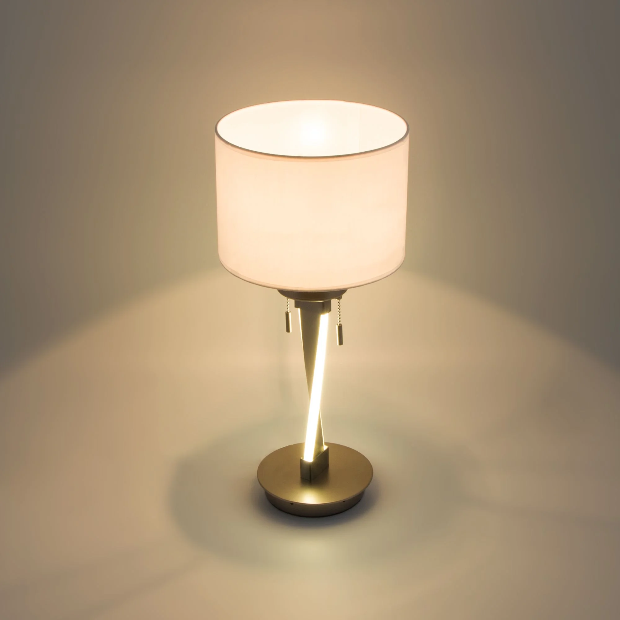 Настольный светодиодный светильник с тканевым абажуром 993 белый / никель